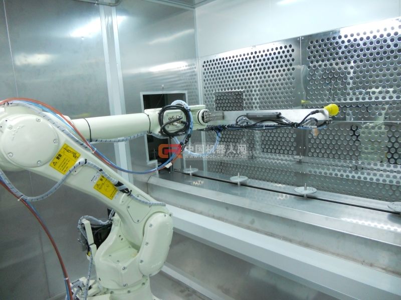 整線共用了十一臺川崎機(jī)器人,一臺RS20N用于在線除塵,五臺川崎RS20N用于搬運(yùn),五臺川崎KF121六軸防爆多關(guān)節(jié)型用于涂裝。川崎RS20N機(jī)器人配合Y型轉(zhuǎn)臺自動(dòng)搬送---機(jī)器人/自動(dòng)移載。搬運(yùn)到線體對面噴房內(nèi)由川崎KF121六軸多關(guān)節(jié)型涂裝機(jī)器人進(jìn)行噴涂。完成后川崎RS20N機(jī)器人配合Y型轉(zhuǎn)臺自動(dòng)搬送---機(jī)器人/自動(dòng)移載回到整線鏈條輸送線上。