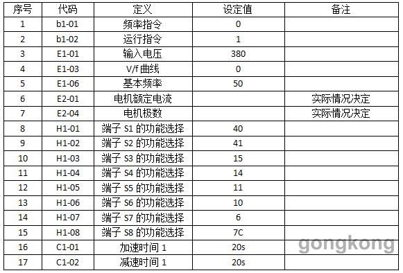 ①速度指令給定方式需采用增/減,也就是從低速1Hz啟動,升速時用“SB3”鍵操作,逐漸升速到所需要的頻率,最高到50Hz全速運行;速度降低時采用“SB2”鍵操作,逐漸降速到所需要的頻率,最低為1Hz,即停止運轉。