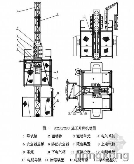 1、施工升降機的組成:施工升降機主要組成部分如下:導軌架、吊籠、傳動系統(tǒng)、附墻架、底架護欄、電氣系統(tǒng)、安全保護裝置、電纜供電裝置等。如圖所示:
