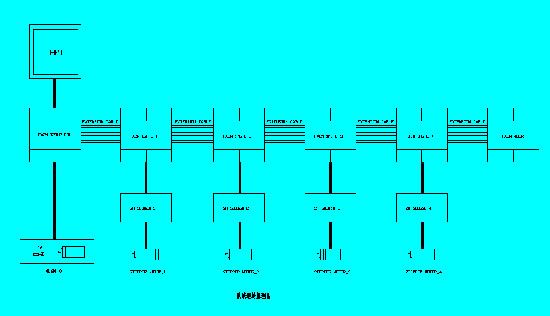 本系統(tǒng)由一個(gè)FX2N-128MR-001主體CPU,一個(gè)FX2N-48ER擴(kuò)展模塊,四個(gè)脈沖定位控制模塊FX2N-1PG,一個(gè)人機(jī)界面(HMI),四個(gè)步進(jìn)馬達(dá)驅(qū)動(dòng)模塊組成。