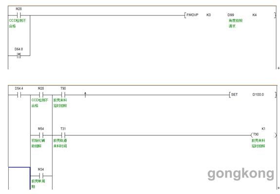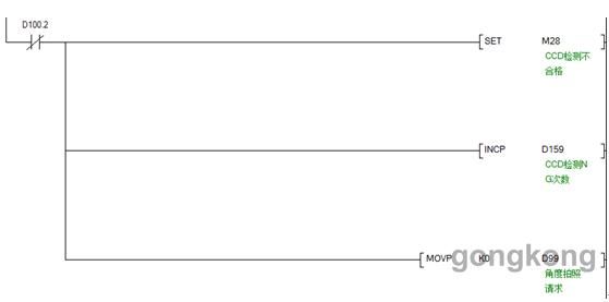 D100.0為PLC是否要求檢測。1為請求檢測;0為不檢測。收到CCD控制器檢測完成后,PLC需將D100.0復位為0。