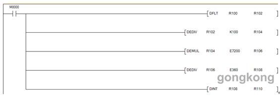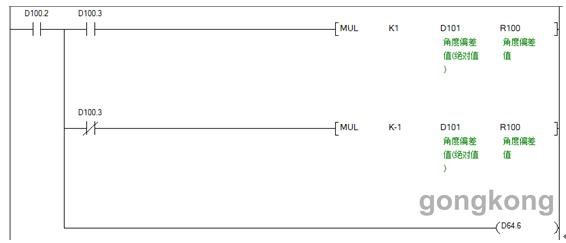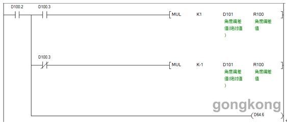 D101為角度偏差值的絕對值。單位為實際的“度”值再乘以100,取整。如果一個脈沖相當于0.01度,它就可以當實際脈沖數。