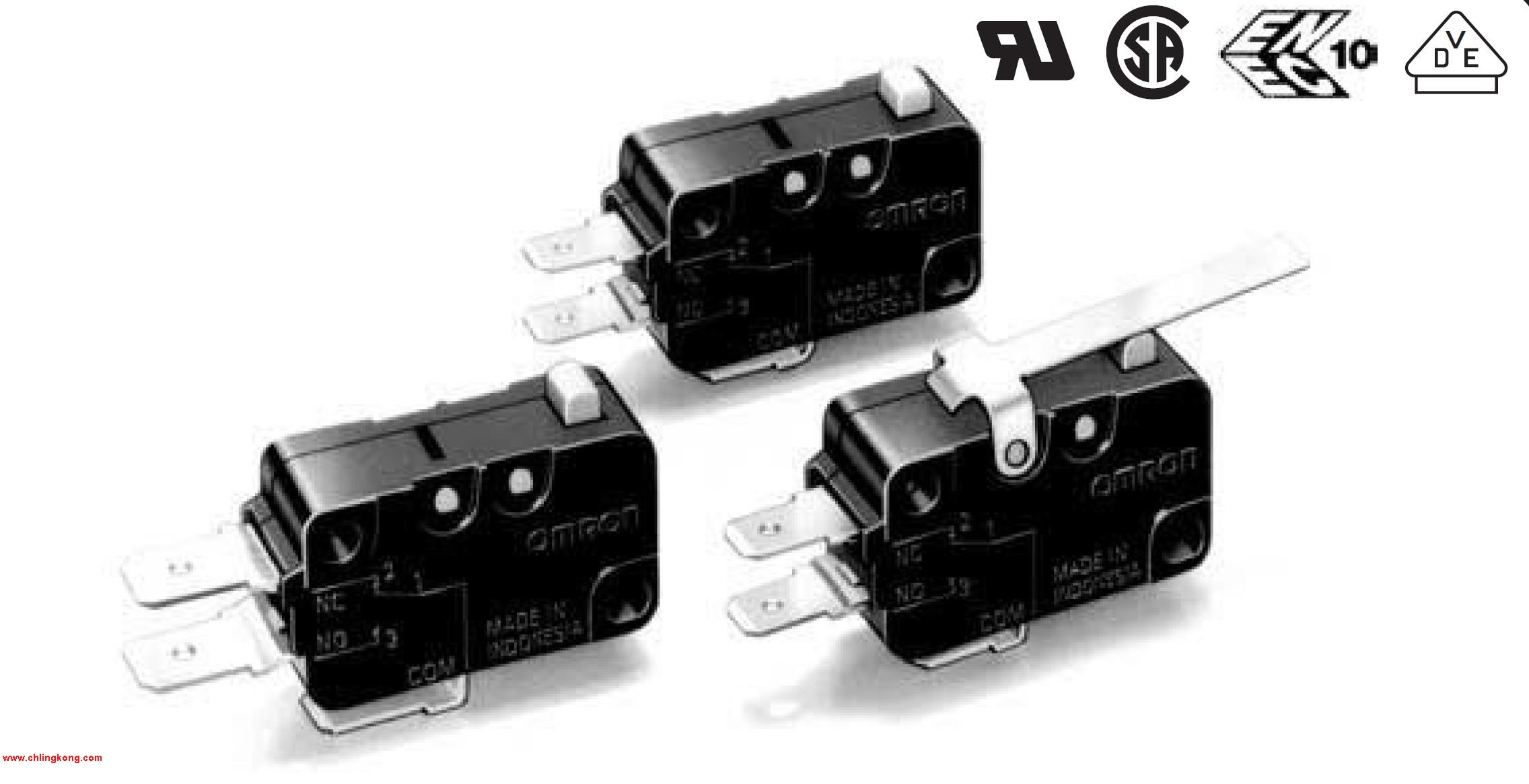 通過UL、CSA和CCC (中國標準)規格認證。種類:3接點及MBB接點開關(帶強制斷開構造)。