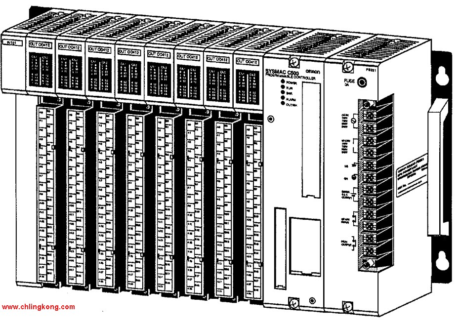 實行微機控制、軟件則由使用者自行開發。大 I/O:512點 程序容量:30K歐姆龍CV500-BSC41。