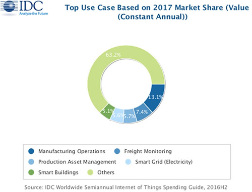 IDC表示,制造、貨運監(jiān)控和生產(chǎn)性資產(chǎn)管理等領域將吸引最多的投資。智能管網(wǎng)技術將被用于電力、煤氣和自來水物聯(lián)網(wǎng) 而智能建筑技術預計今年也將吸引可觀的投資。