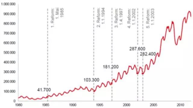 德國自2000年也出現了大量的“租借工”,即借由獨立人力公司雇傭而非與用工企業締結合同的“臨時工”,企業借此免去許多解雇和稅務方面的成本和法律問題,這種勞動者被任意支配的用工方式一度上升成為社會議題受到猛烈抨擊。然而其背后正是德國用工成本與產品利潤在“世界變平”過程中產生的客觀沖突,大企業可以通過人力資源外包轉嫁這種成本,而中小企業在這方面往往缺少選項,德國的高福利政策傳統在制造業成本人力成本飆升面前騎虎難下。