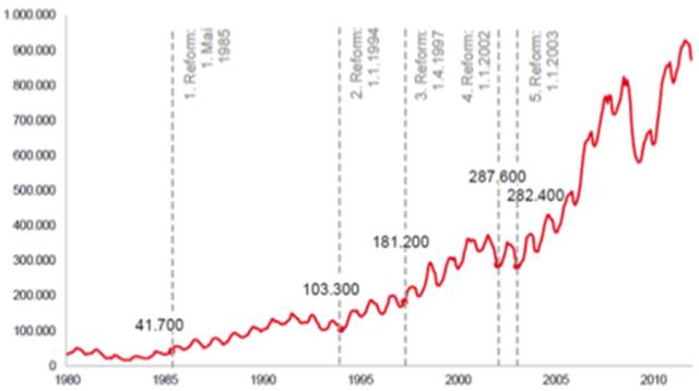 圖2 1990年-2010年德國就業市場