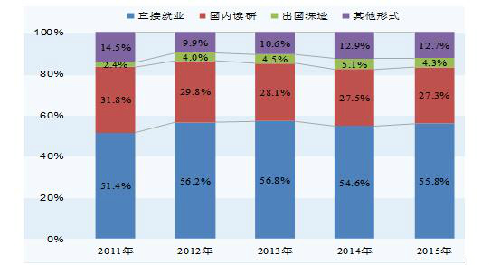 “十二五”期間通過工程教育專業認證的工科專業畢業生就業去向變化趨勢